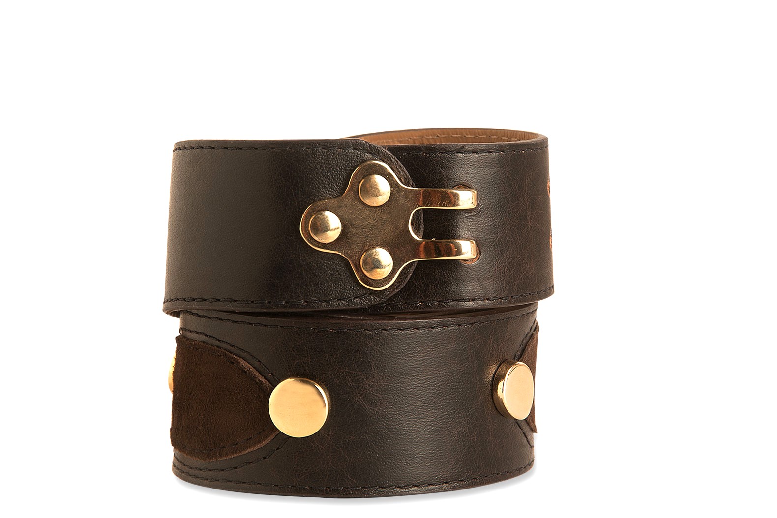 Feito em couro café escuro, o Cinto Marie combina textura e delicadeza.
