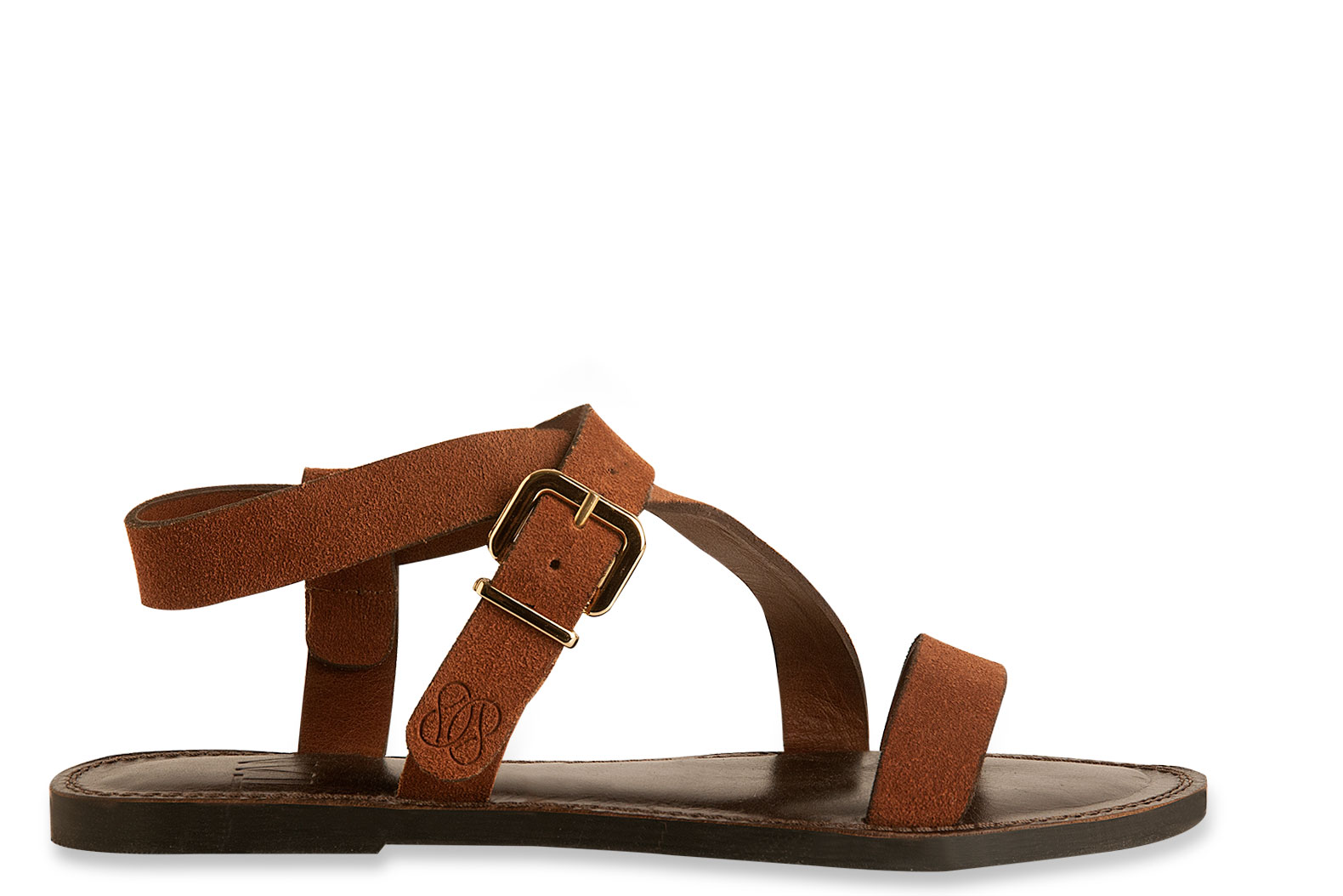 A Freijó apresenta tiras grossas em couro, com desenho limpo e estruturado, e uma tira cruzada frontal que garante estabilidade ao caminhar. Na lateral, o nosso ícone adiciona um detalhe discreto e sofisticado. A palmilha em couro encerada traz um toque suave e um acabamento mais refinado, enquanto a textura dos couros revela profundidade e variações táteis. O pesponto aparente na palmilha reforça o caráter artesanal do modelo, complementado pelo solado leve e confortável e pelo fecho lateral com fivela metálica ajustável.
